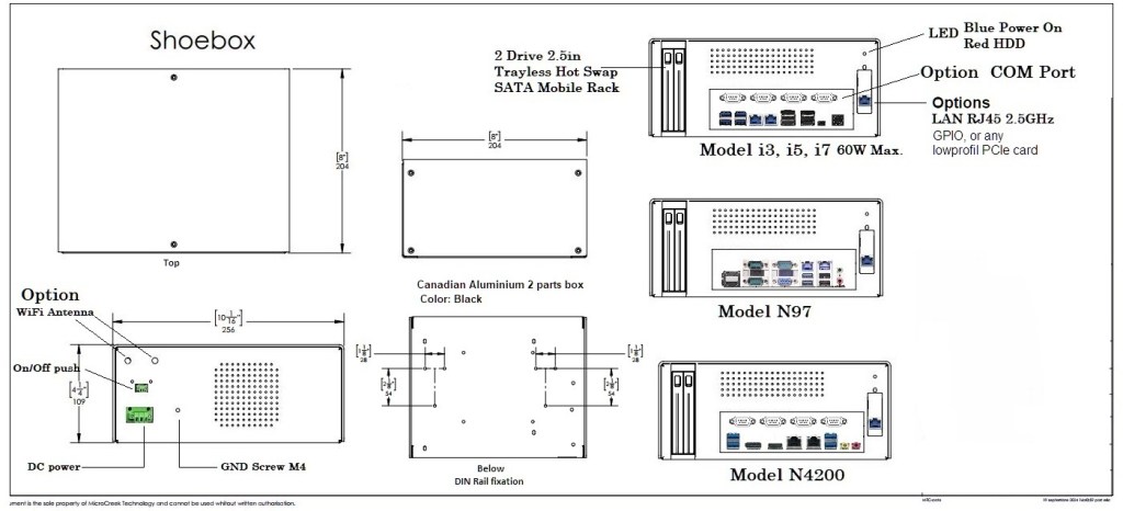 Entrées / Sorties : Nombreuses possibilités selon vos besoin, nous contacter pour une solution sur mesure : USB 2.0 & 3.0 / Display Port / HDMI / LAN GbE / Audio I/O / COM RS232…